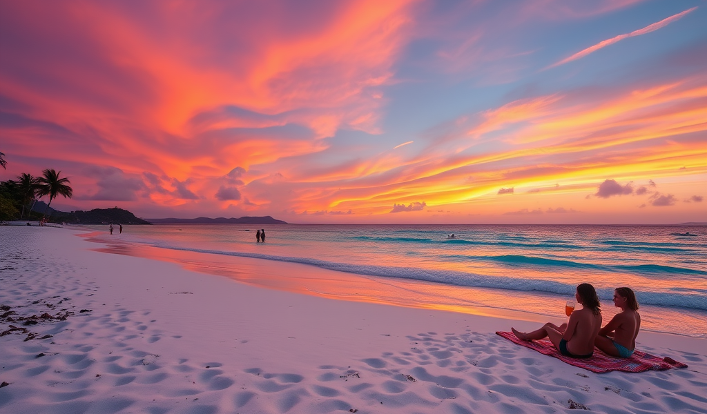 One of the biggest “wow” moments at Flamingo Beach is sunset. Locals and travelers alike gather every evening to watch the sky explode in a mix of orange, pink, and purple. It’s not just beautiful—it’s a full-on ritual. Bring a beach towel, a drink, and just soak it in.